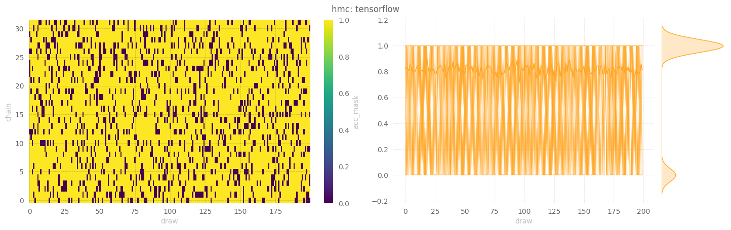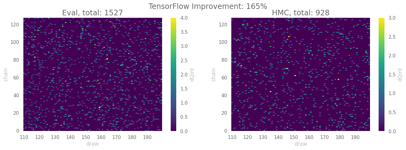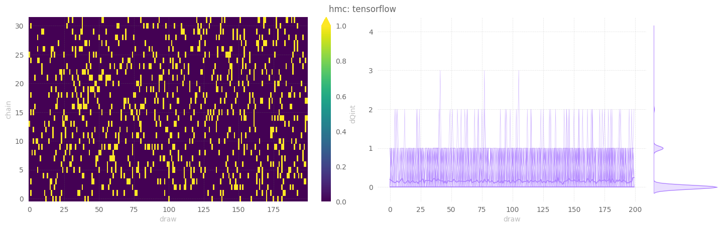 console.print(f"TensorFlow, HMC\n dQint.sum('chain'):\n {dqh.astype(int).sum('chain').T}")