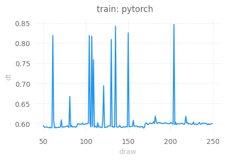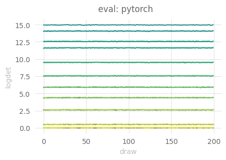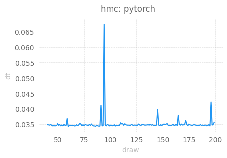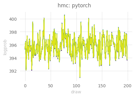 PyTorch, HMC dQint.sum(‘chain’): [14 6 10 5 7 9 14 8 12 10 19 8 4 6 9 7 9 17 9 7 11 13 9 11 4 9 7 14 10 6 15 6 10 9 13 7 15 10 7 9 3 14 8 6 11 9 9 6 9 6 16 6 8 10 14 16 9 12 15 10 9 9 5 6 12 17 6 8 9 12 5 12 16 9 7 8 11 15 16 12 12 7 5 14 9 9 13 6 12 10] dQint.sum(): 883