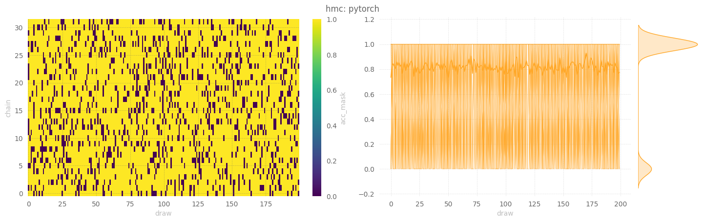 console.print(f"PyTorch, HMC\n dQint.sum('chain'):\n {dqh.astype(int).sum('chain').T.values}")