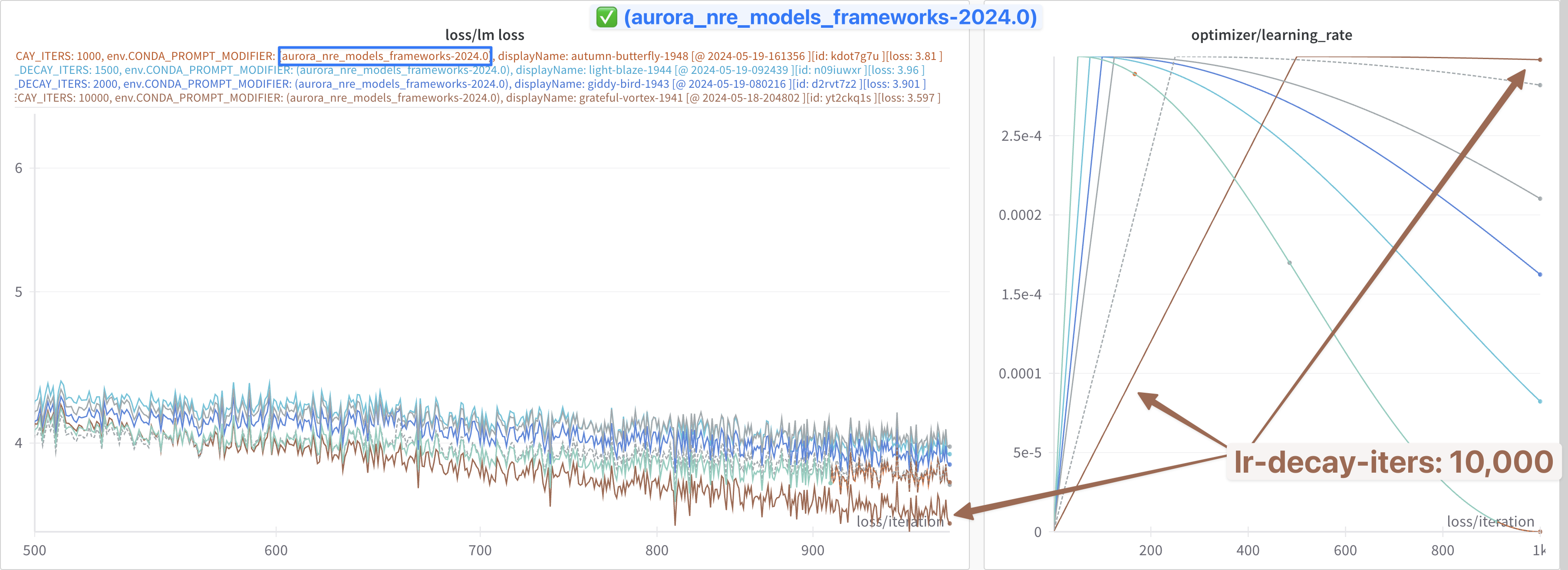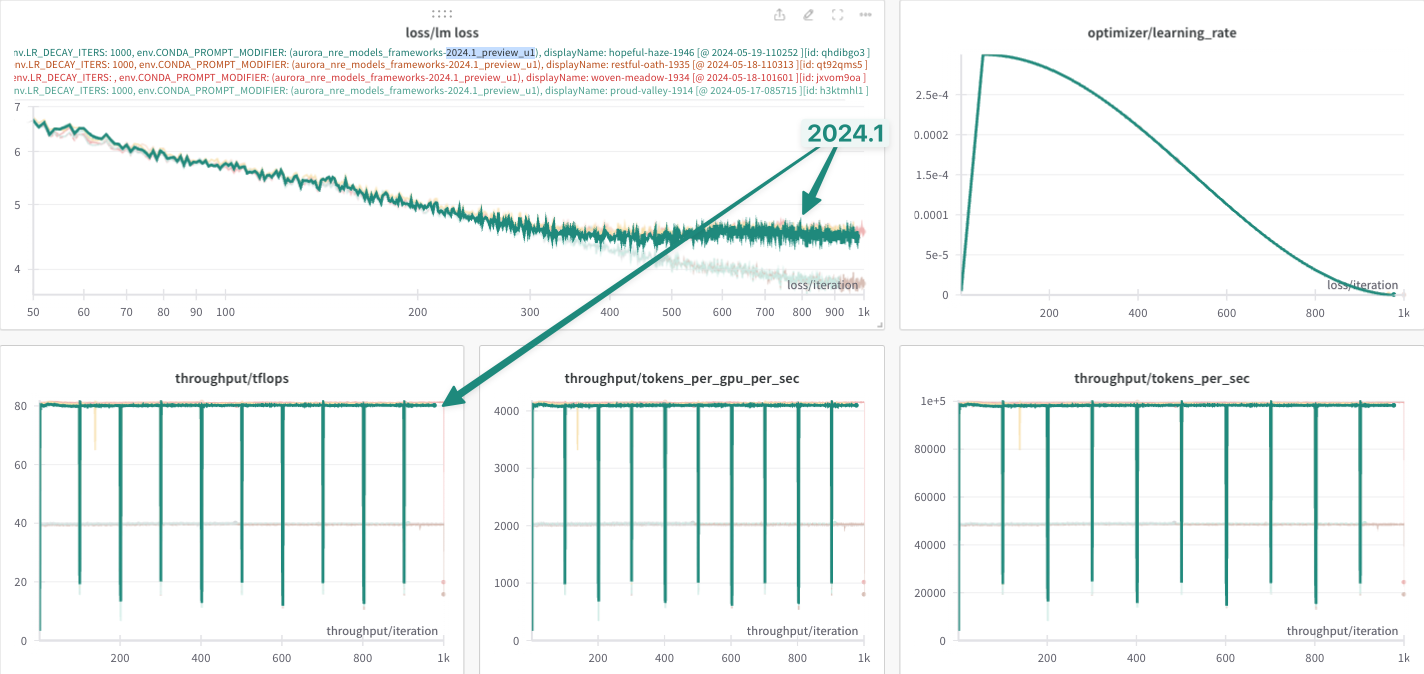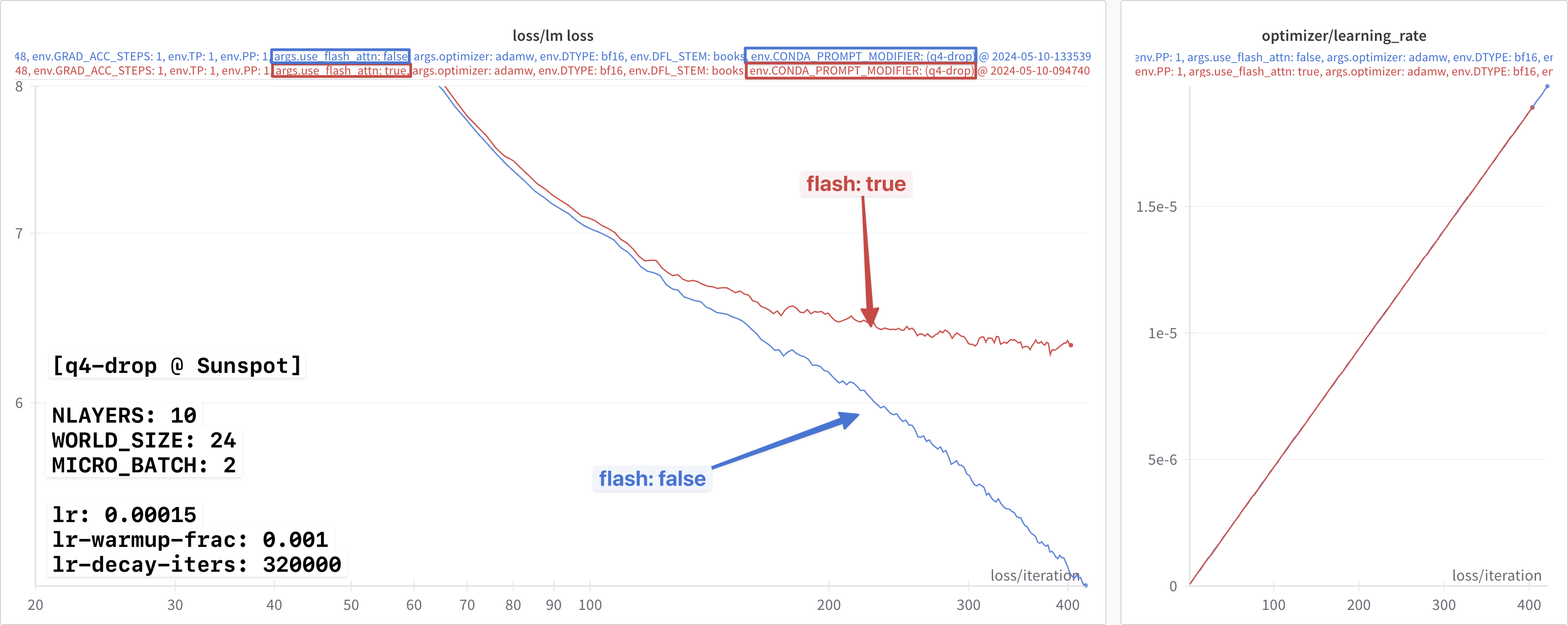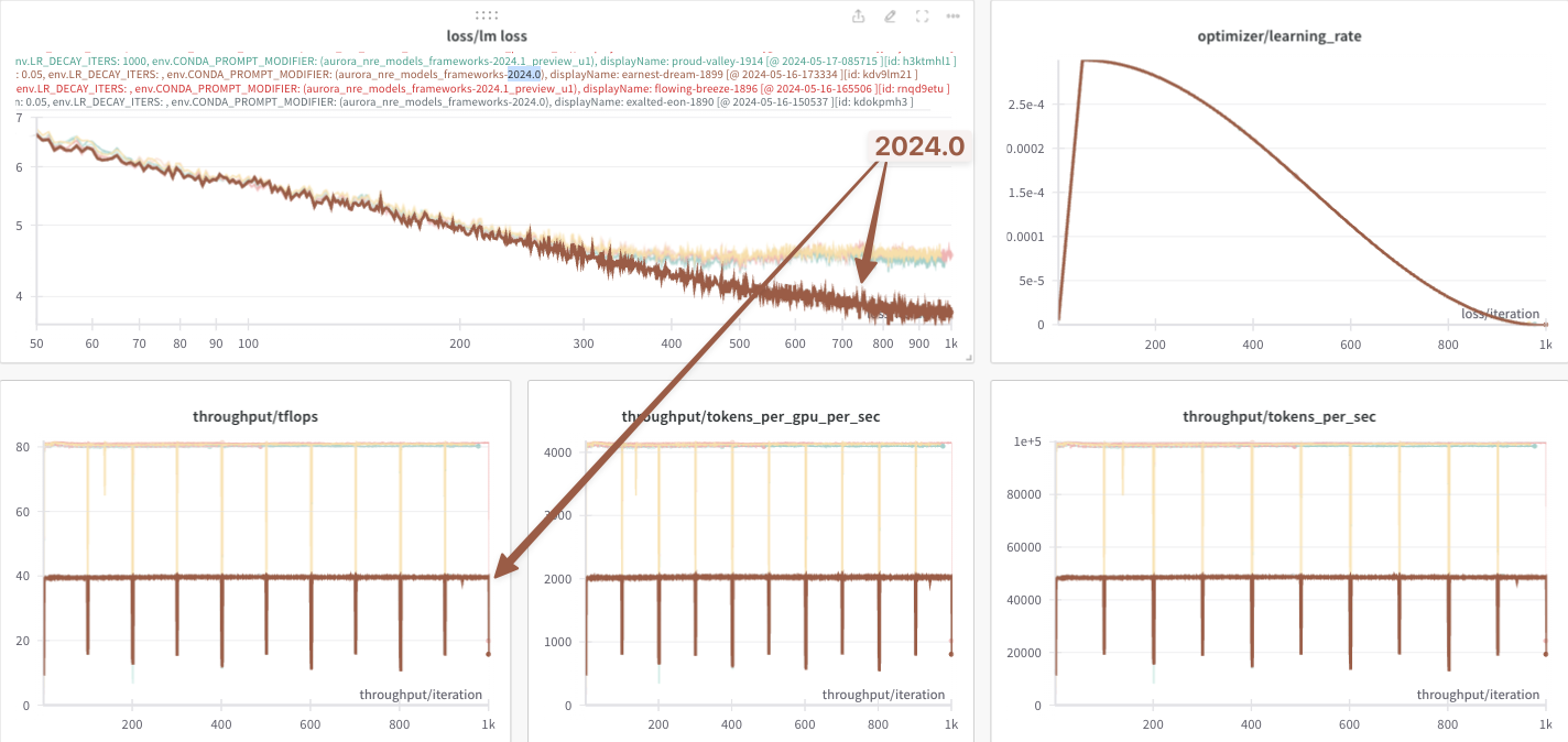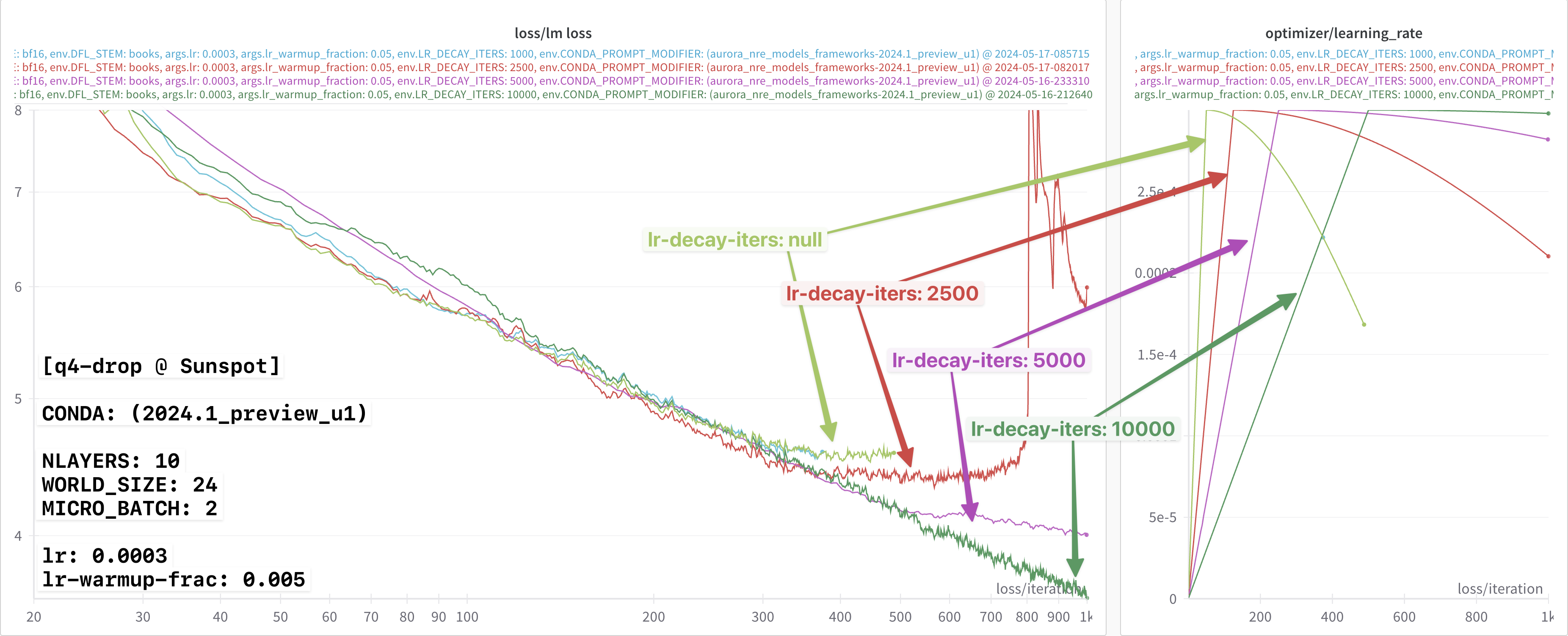 An additional source of confusion for me was that the discrepancy in the loss curves (seemingly) disappeared when using the learning rate settings provided by Intel4, but not when using the ALCF defaults5.